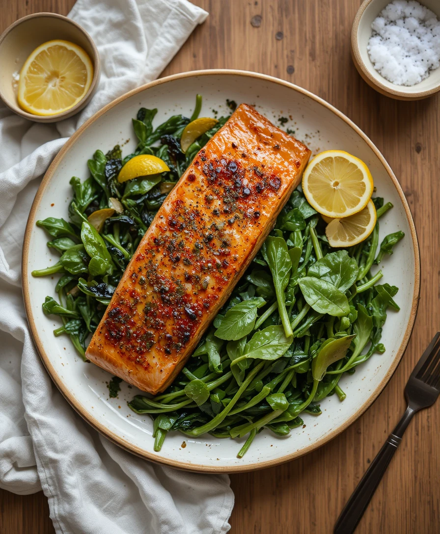 We move away from heavy winter dishes and start craving food that feels fresh, simple, and nourishing. Pan-seared salmon is one of those perfect in-between meals – warm but not heavy, comforting yet bright.