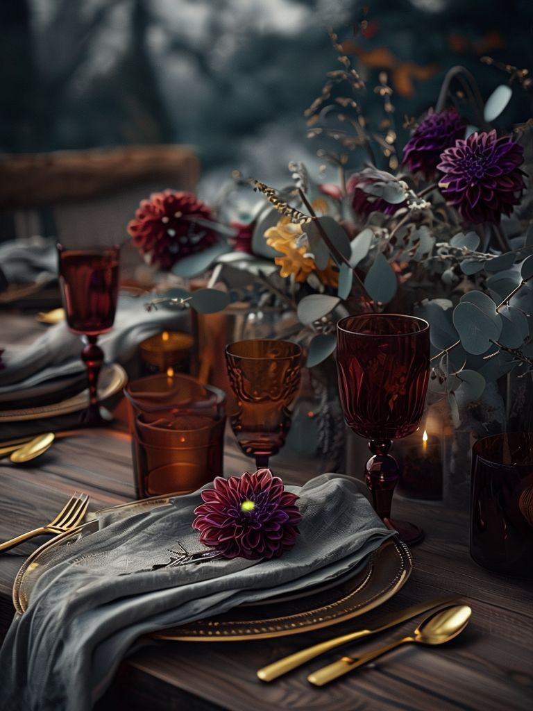 • Use glassware with character – vintage-style tumblers or amber-tinted glasses look beautiful against warm candlelight.