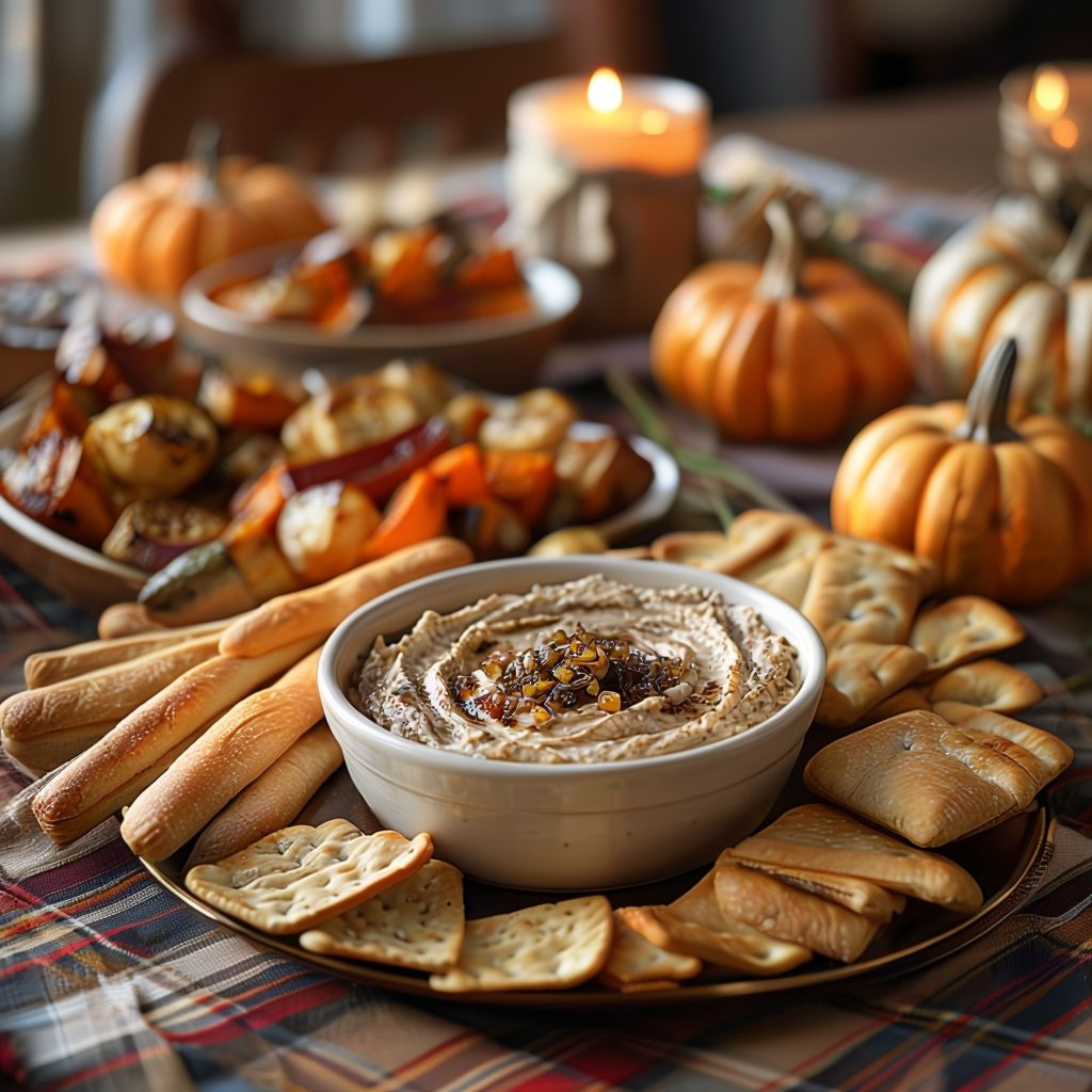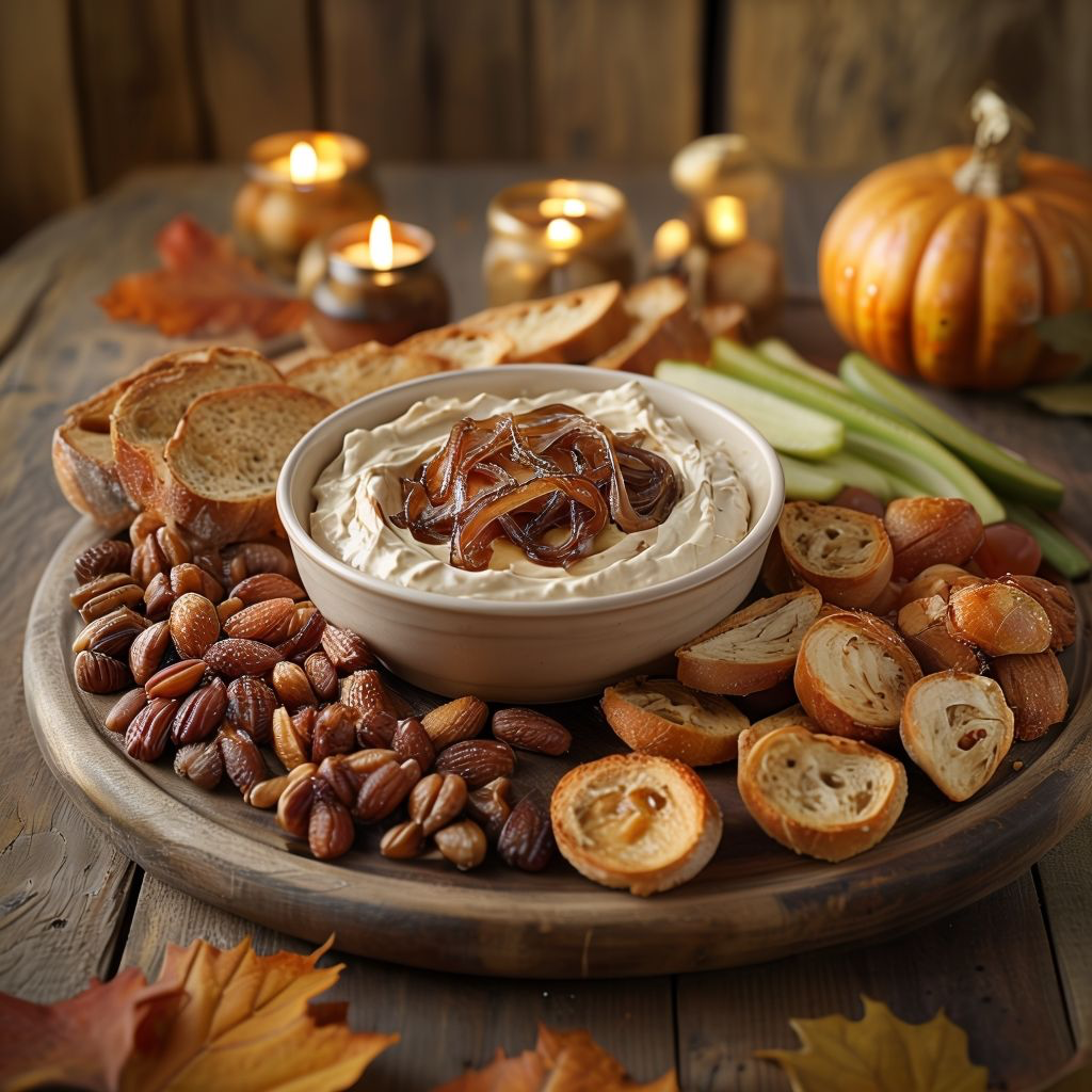 For cosy nights or gatherings, serve your caramelised onion dip as part of an autumn-inspired board. Include: