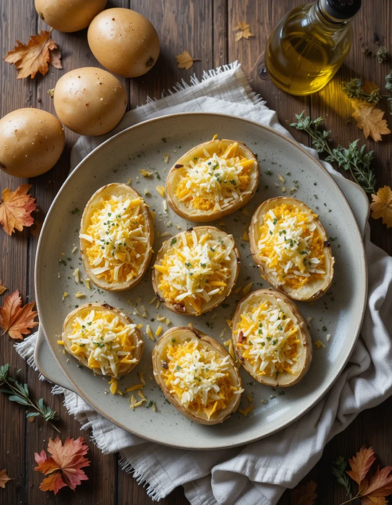 Potatoes are at their best in the cooler months – earthy, filling, and deeply satisfying. When baked and crisped, then topped with cheese, they become the kind of snack that warms you from the inside out.