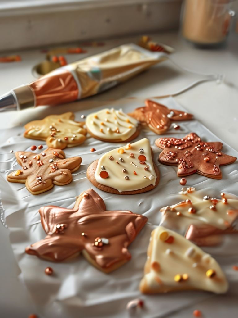 - Use piping bags or a small spoon to decorate your cookies – you can outline leaves, swirl shades together, or add a sprinkle of edible gold dust for a harvest sparkle.