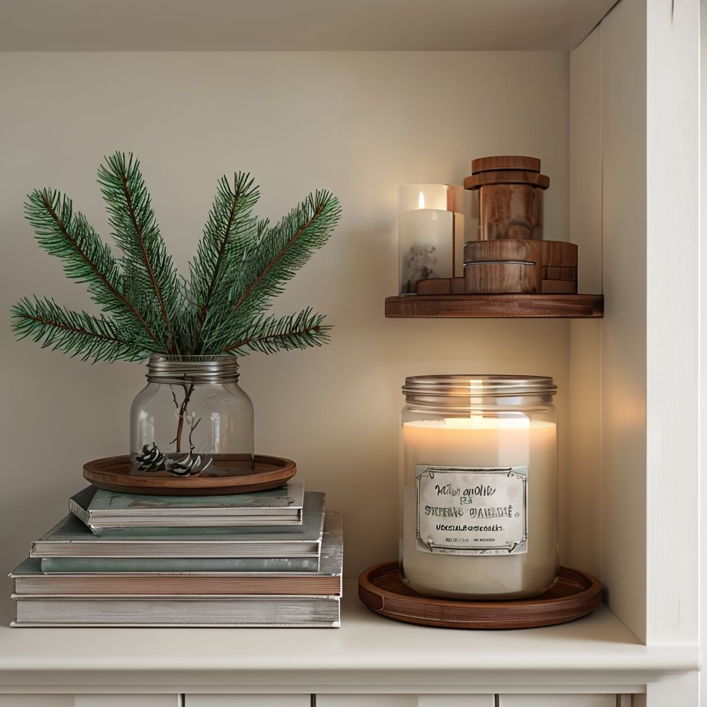 - Place a candle or diffuser beside it with winter scents like pine, vanilla, or spiced orange.
