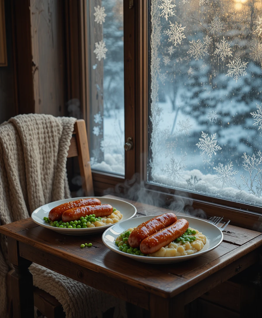 - The creamy mash and sizzling sausages create a cosy, nostalgic feeling.