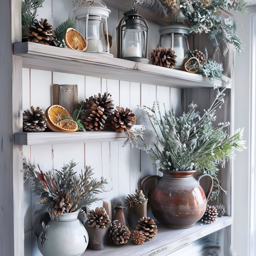 - Sprigs of pine or fir arranged in jars give that seasonal scent.