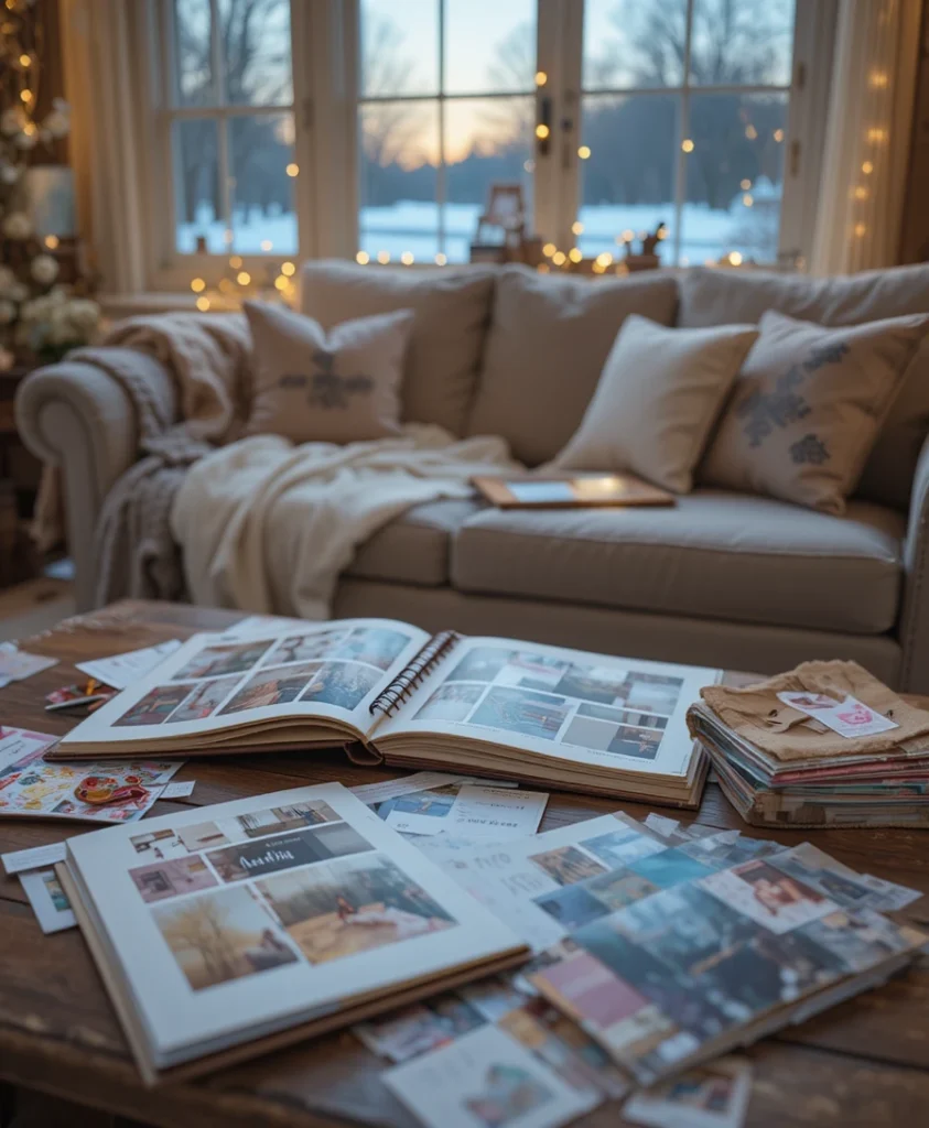 It’s the warmth of a candlelit table, the softness of a blanket, the feeling of watching snow fall outside while you arrange photos and write little notes you’ll cherish years from now.