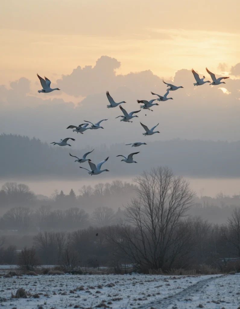 Many geese migrate through the UK in winter – watching their V-shaped formation sweep across a frosty sky is breathtaking.